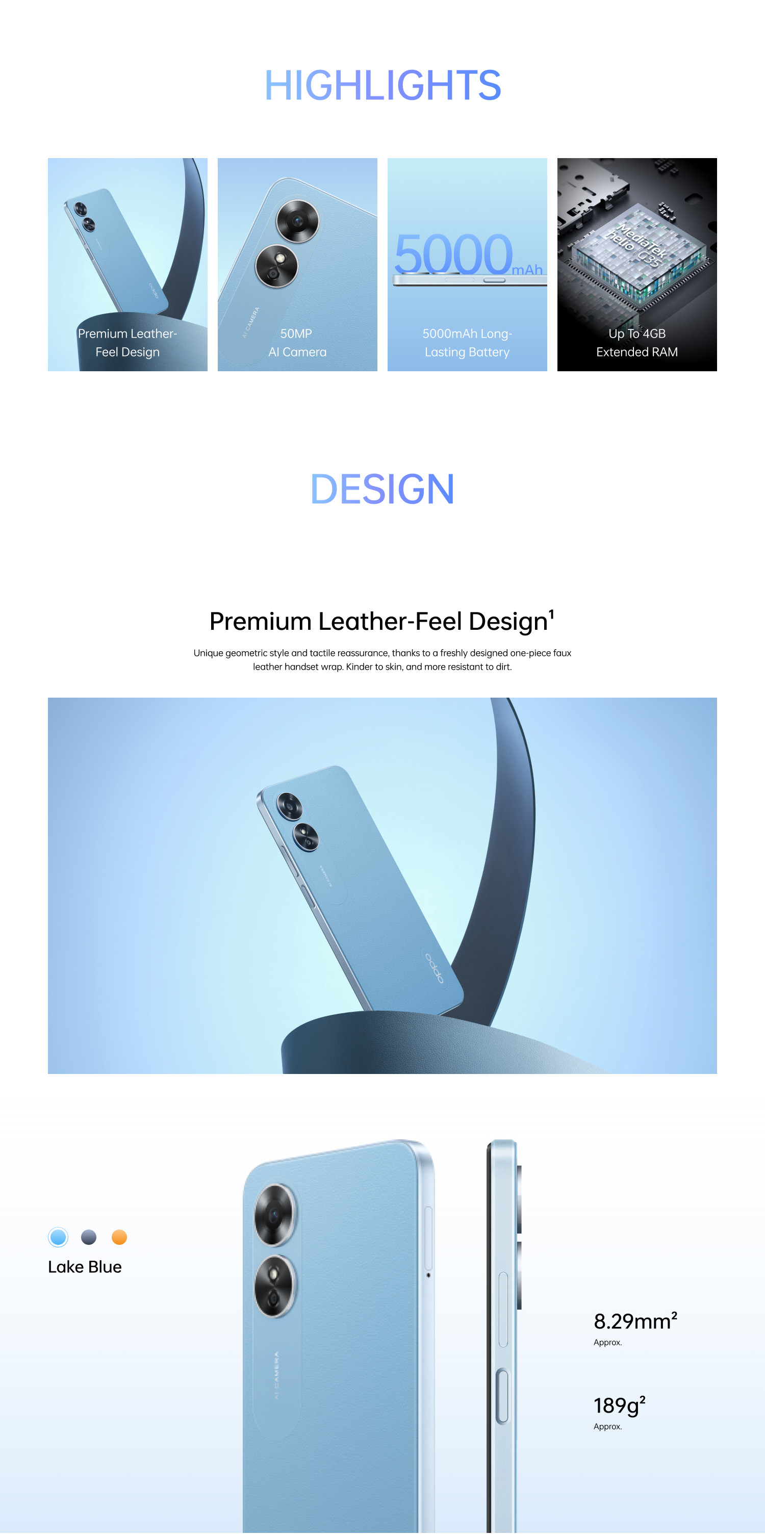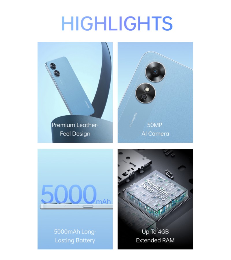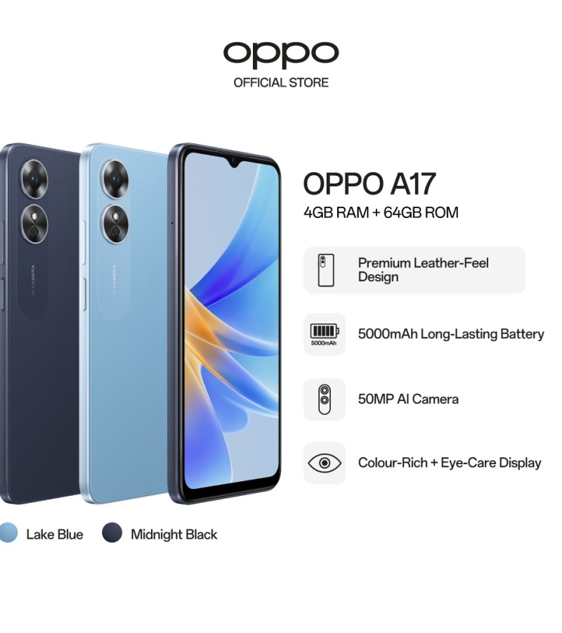 Adopting the ultra-slim body and Premium Leather-Feel design, the new OPPO A17 gives off a one-of-a-kind visual
