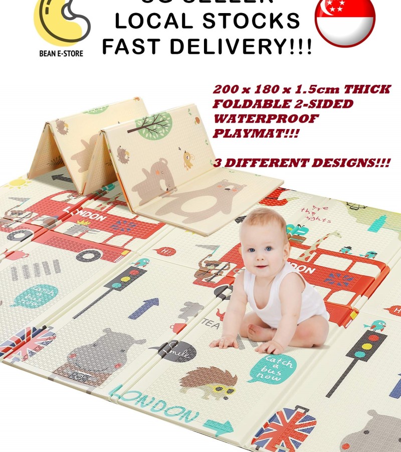 最便宜的!!!Bean Estore[200x180x1.5cm]婴儿XPE厚折叠游戏垫地板垫泡沫游戏垫无毒折叠防水爬行垫