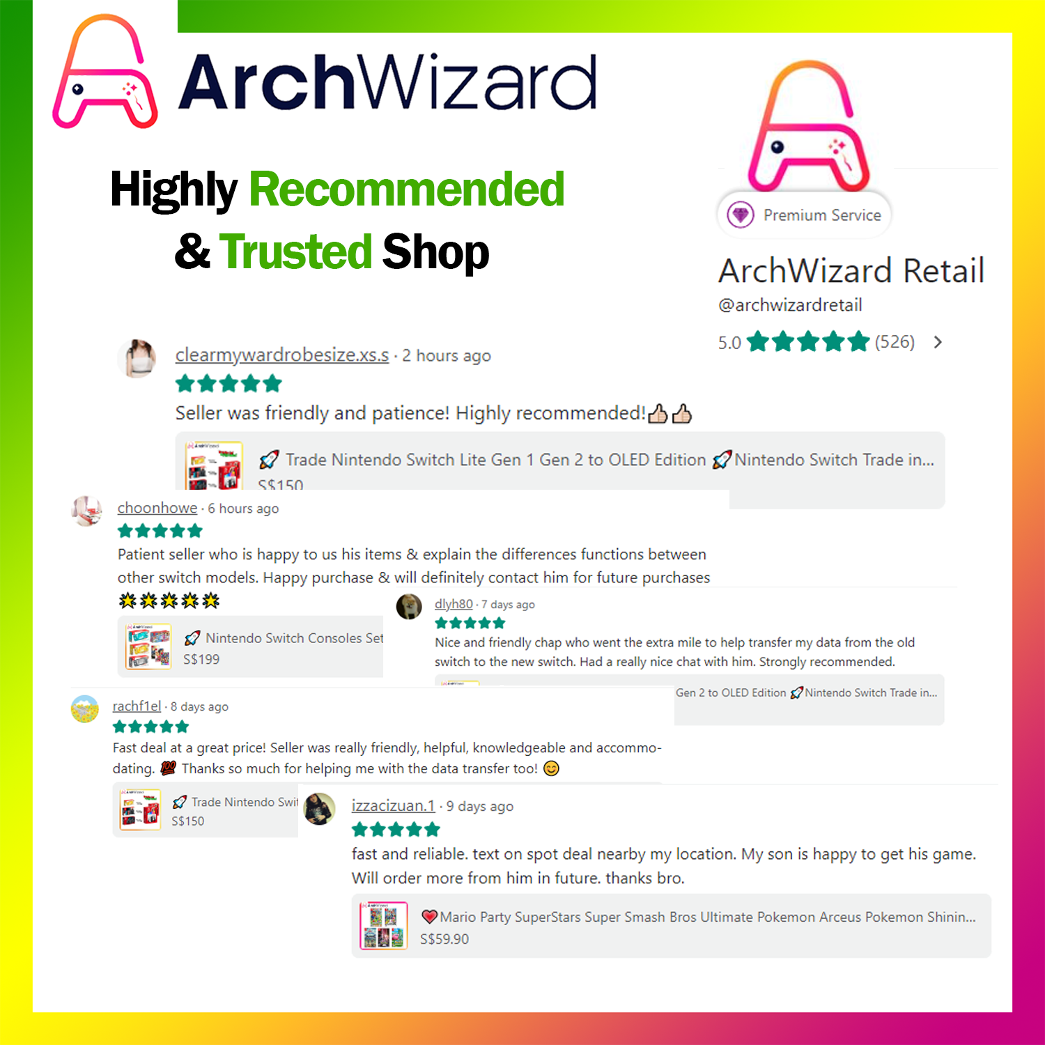 Get ready to experience gaming like never before with ArchWizard - the young start-up that's set to revolutionize the way we play console games! Our family-friendly environment caters to gamers of all ages, offering the latest and greatest consumer electronics like Nintendo Switch and PS5, a vast array of games, accessories, board games, VR equipment, and more. With our retail sale, trade, and rental services, we've got everything you need to take your gaming to the next level. Join us and discover why ArchWizard is the ultimate destination for families and gamers alike!