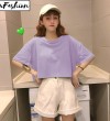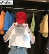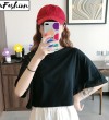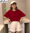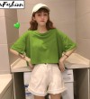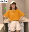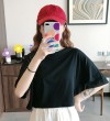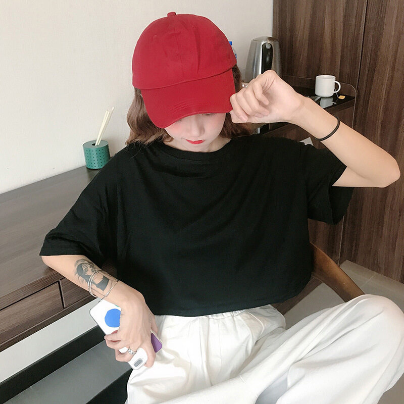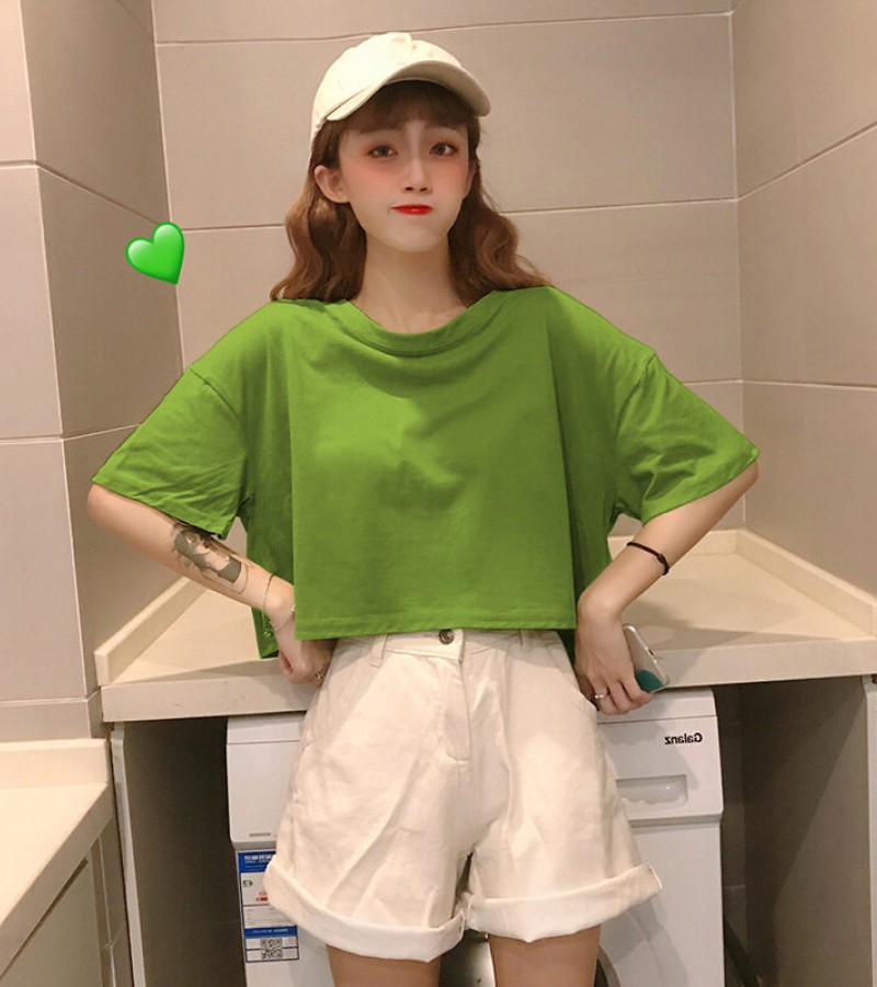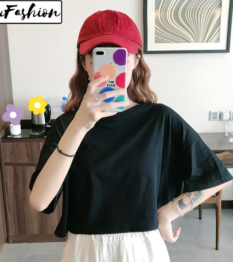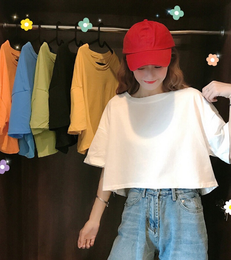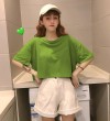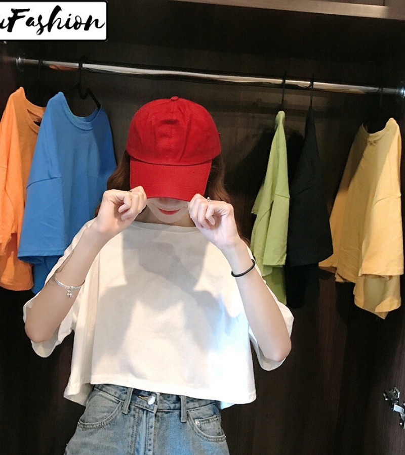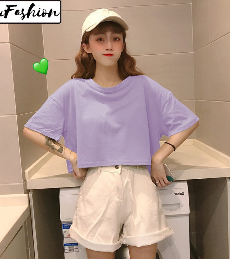 LuFashion女式露脐上衣夏季糖果色短袖素色休闲T恤